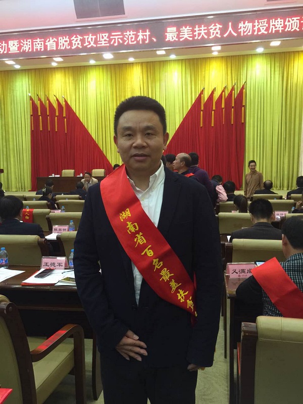 2016年10月14日,湖南長沙“扶貧日宣傳活動暨湖南省脫貧攻堅示范村、最美扶貧人物授牌頒證儀式”在湖南九所賓館會議中心隆重舉行。參加會議的主要領(lǐng)導有省人民政府副省長戴道晉、省政府副秘書長曹英華、省扶貧辦、湖南日報社等單位主要負責人。經(jīng)過推薦申報、篩選初審、公眾投票和組織專家評審,我司董事長趙忠榮獲 “湖南百名最美扶貧人物”稱號。
