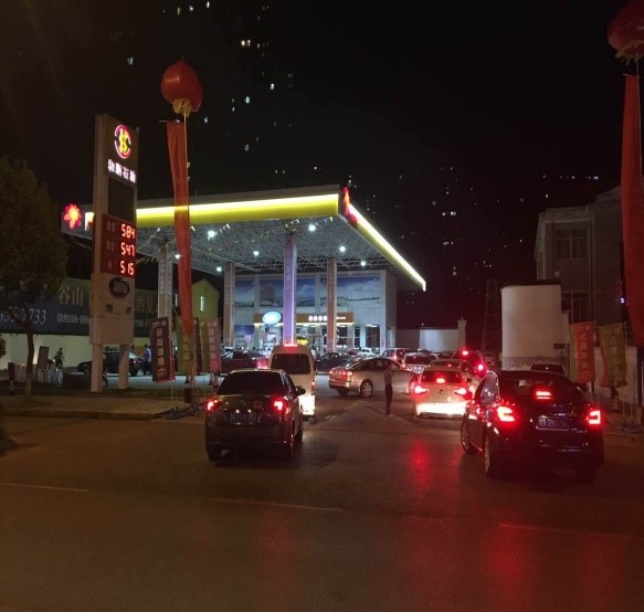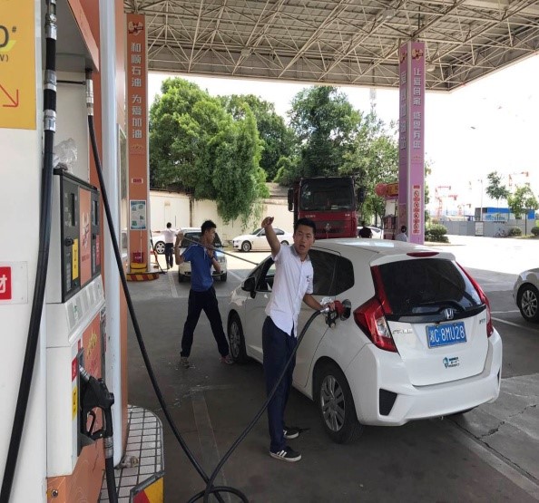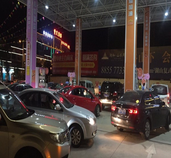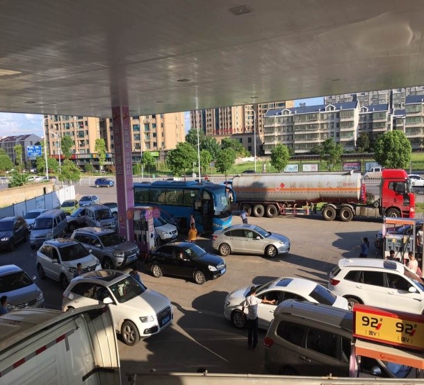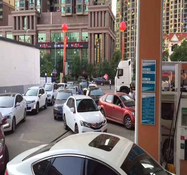 7月18日,藍(lán)天如洗,加油站內(nèi)彩旗飄飄,從上午7:00開始,各加油站便進(jìn)入了忙碌不停的狀態(tài),一整天車輛川流不息,絡(luò)繹不絕。