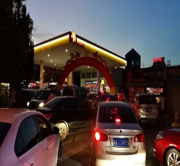 7月18日,藍(lán)天如洗,加油站內(nèi)彩旗飄飄,從上午7:00開始,各加油站便進(jìn)入了忙碌不停的狀態(tài),一整天車輛川流不息,絡(luò)繹不絕。